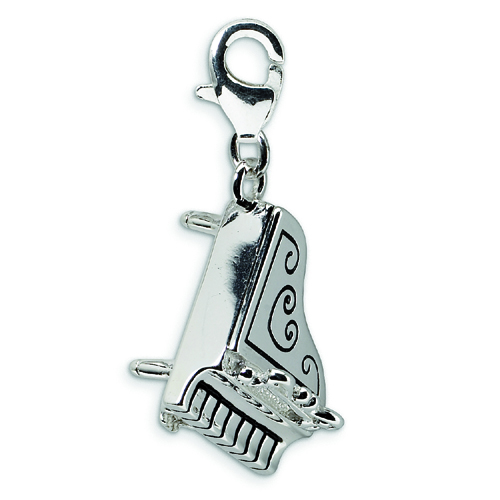 Sterling Silver 3-D Enameled Grand Piano With Lobster Clasp Charm