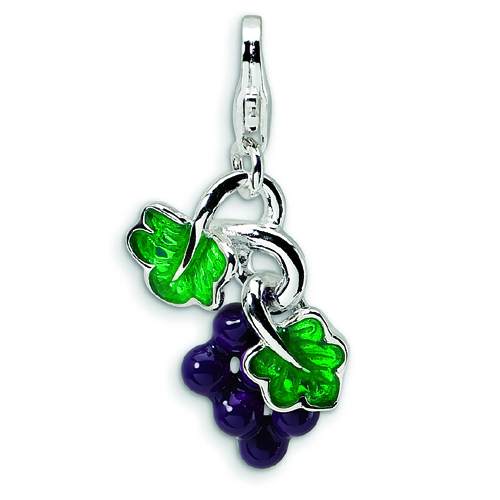 Sterling Silver 3-D Enameled Grapes With Lobster Clasp Charm