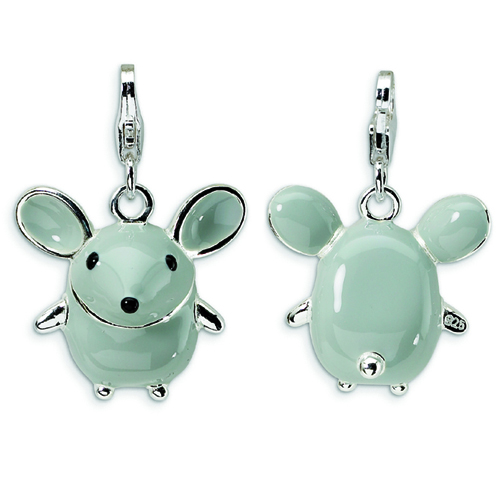 Sterling Silver 3-D Enameled Grey Mouse With Lobster Clasp Charm