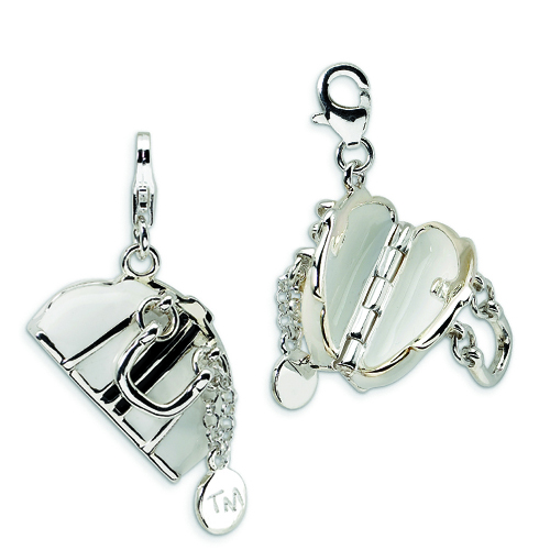 Sterling Silver 3-D Enameled Opening Hand Bag With Lobster Clasp Charm