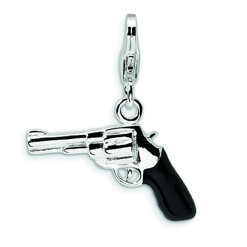Sterling Silver 3-D Enameled Pistol With Lobster Clasp Charm