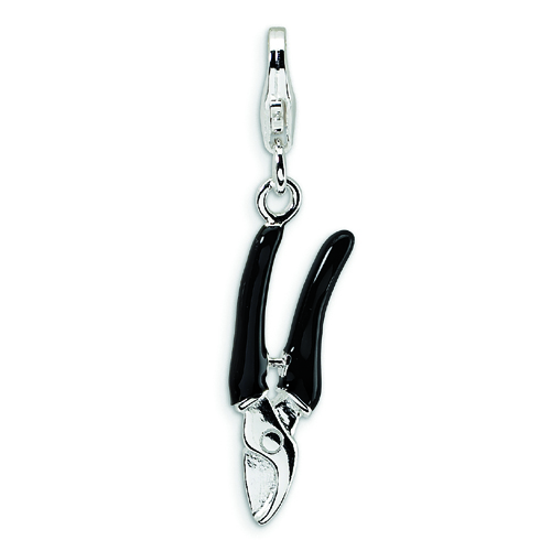 Sterling Silver 3-D Enameled Pruning Shears With Lobster Clasp Charm