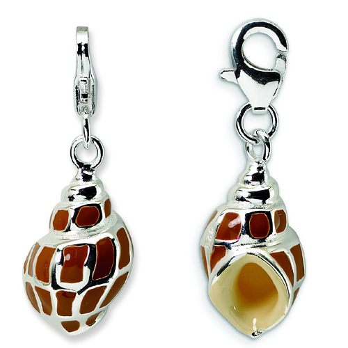 Sterling Silver 3-D Enameled Shell With Lobster Clasp Charm