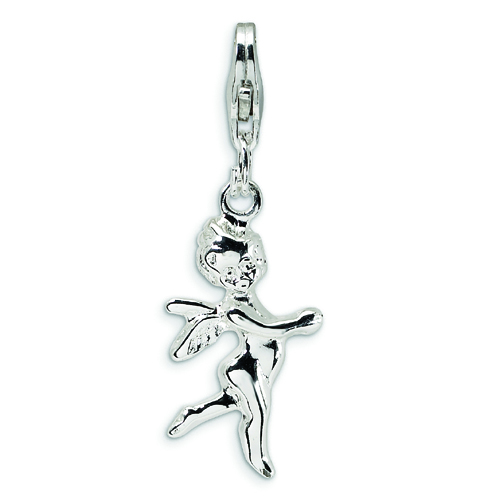 Sterling Silver 3-D Polished Angel With Lobster Clasp Charm