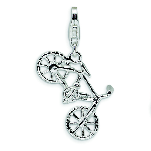 Sterling Silver 3-D Polished Bicycle With Lobster Clasp Charm