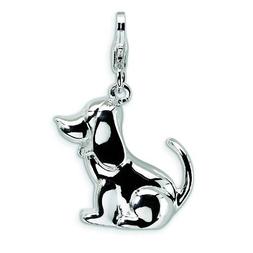 Sterling Silver 3-D Polished & Enameled Dog With Lobster Clasp Charm