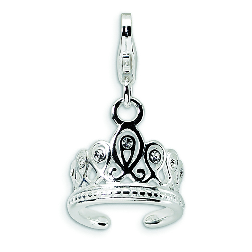 Sterling Silver 3-D Swarovski Crystal Tiara With Lobster Clasp Charm