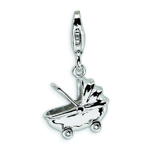 Sterling Silver Baby Carriage With Lobster Clasp Charm