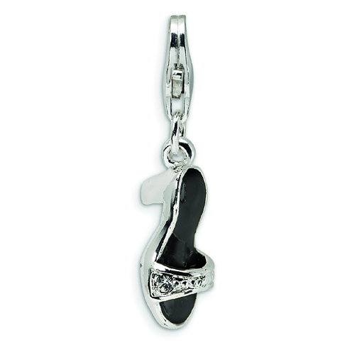 Sterling Silver Black Enamel & Polished Shoe With Lobster Clasp Charm