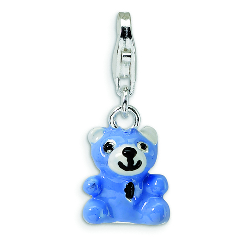 Sterling Silver Blue & Enamel Teddy Bear With Lobster Clasp Charm