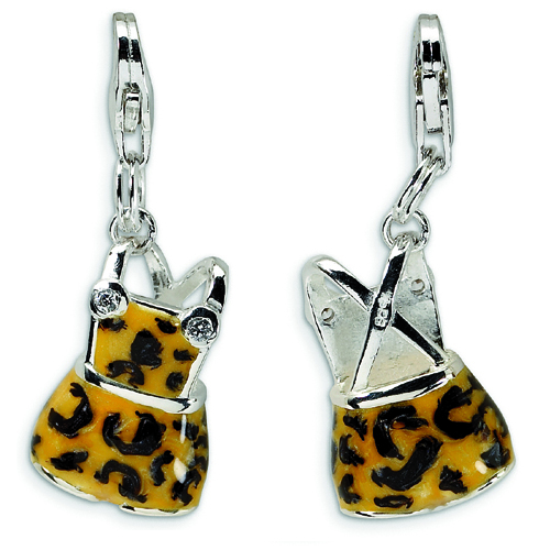 Sterling Silver Cubic Zirconia Black & Yellow Enameled Overall With Lobster Clasp Charm