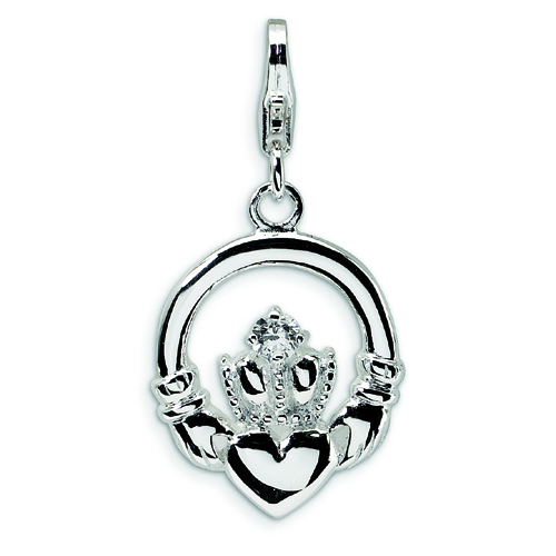 Sterling Silver Cubic Zirconia Claddagh With Lobster Clasp Charm