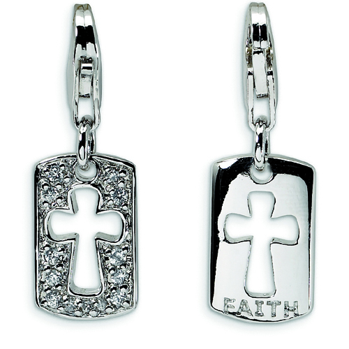 Sterling Silver Cubic Zirconia Cut-out Cross/Faith Clip-on With Lobster Clasp Charm