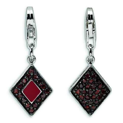 Sterling Silver Cubic Zirconia & Enameled Diamond Shaped With Lobster Clasp Charm