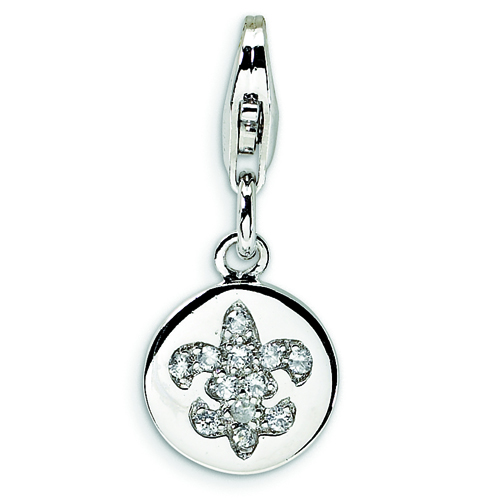 Sterling Silver Cubic Zirconia Fleur De Lis Ornament With Lobster Clasp Charm