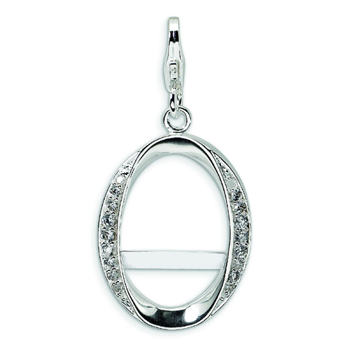 Sterling Silver Cubic Zirconia Oval Photo With Lobster Clasp Charm