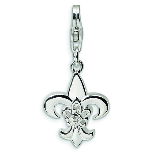 Sterling Silver Cubic Zirconia Polished Fleur de Lis With Lobster Clasp Charm