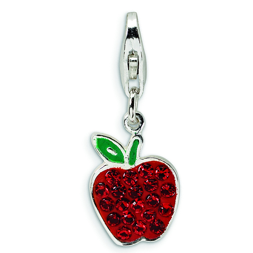 Sterling Silver Enamel Red Crystal Apple With Lobster Clasp Charm