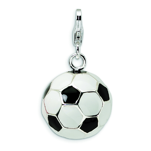 Sterling Silver Enamel Soccer Ball With Lobster Clasp Charm