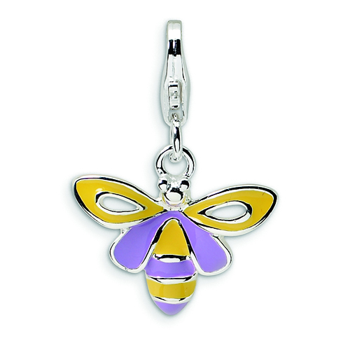 Sterling Silver Enameled Bee With Lobster Clasp Charm
