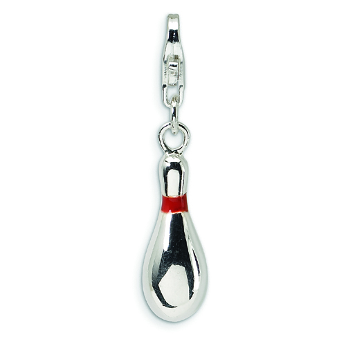 Sterling Silver Enameled Bowling Pin With Lobster Clasp Charm