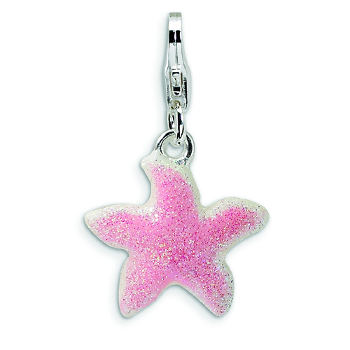 Sterling Silver Enameled Pink Sparkle Starfish With Lobster Clasp Charm