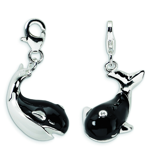Sterling Silver Enameled Swarovski Crystal Whale With Lobster Clasp Charm