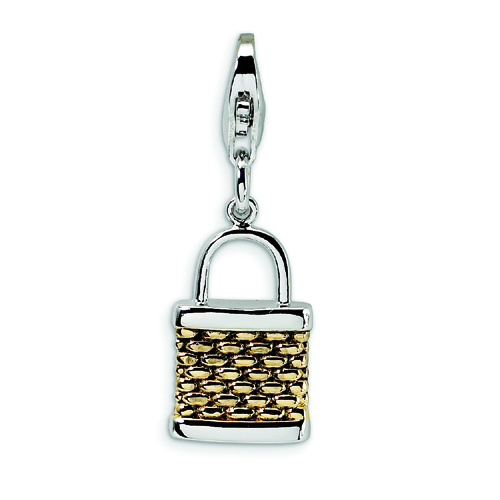 Sterling Silver Gold-plated 3-D Fishing Basket With Lobster Clasp Charm