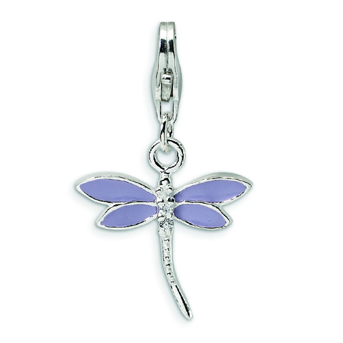 Sterling Silver Lilac Enameled Dragonfly With Lobster Clasp Charm