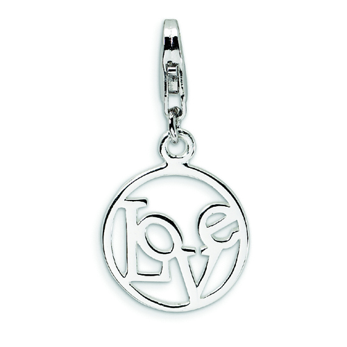 Sterling Silver Polished "Love" In Circle With Lobster Clasp Charm