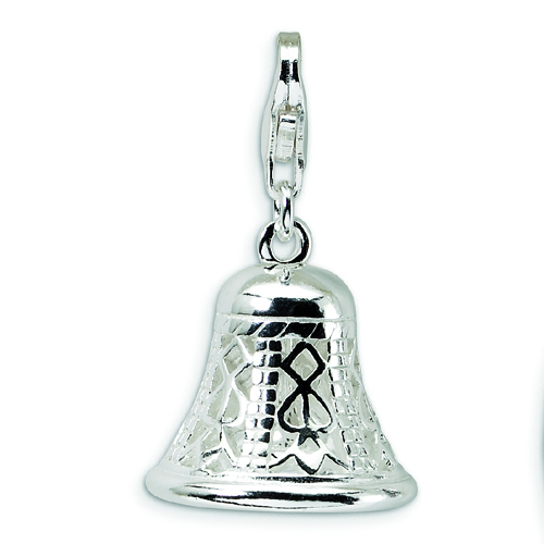 Sterling Silver Polished Movable Bell With Lobster Clasp Charm