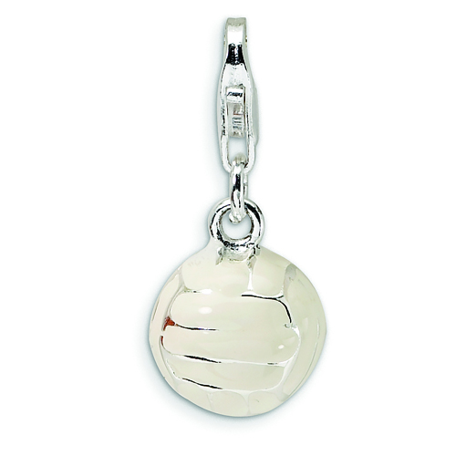 Sterling Silver Polished Volleyball With Lobster Clasp Charm