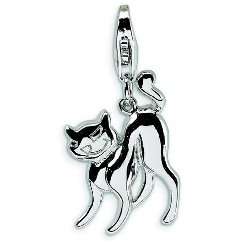 Sterling Silver Scary Cat With Lobster Clasp Charm