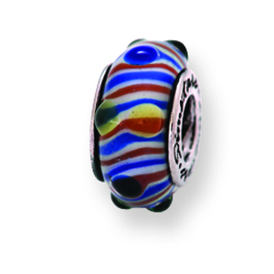 Sterling Silver Reflections Blue/ Green/Yellow Stripes Hand-blown Glass BeaWhy shop online with Ann Jewelry?