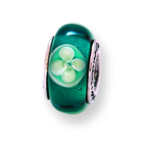 Sterling Silver Reflections Blueish Green Floral Hand-blown Glass BeadWhy shop online with Ann Jewelry?