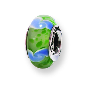 Sterling Silver Reflections Green/Blue Hand-blown Glass BeadWhy shop online with Ann Jewelry?