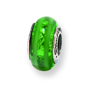 Sterling Silver Reflections Green Hand-blown Glass Bead