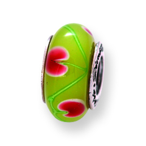 Sterling Silver Reflections Green/Pink Hand-blown Glass Bead