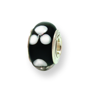Sterling Silver Reflections Black/White Hand-blown Glass Bead