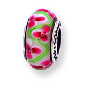 Sterling Silver Reflections Pink/Green Murano Glass Bead