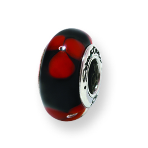 Sterling Silver Reflections Red/Black Murano Glass Bead