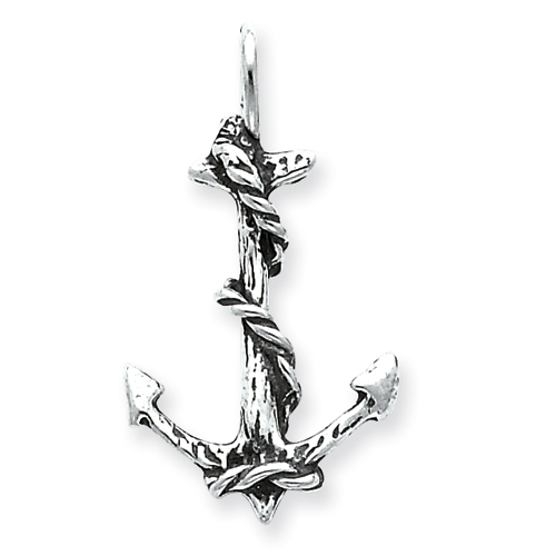 Sterling Silver 3D Antiqued Anchor and Rope Pendant