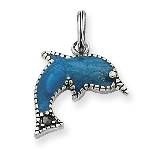 Picture of Sterling Silver Blue Enameled Dolphin Charm