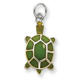 Sterling Silver Green Enameled Turtle Pendant