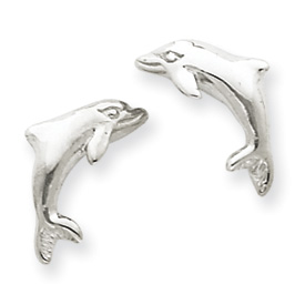 14K Gold Polished Heart & Dolphin Dangle Post Earrings