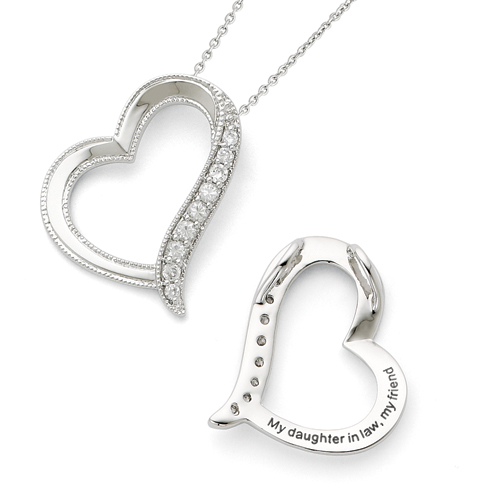 Sterling Silver Antiqued CZ Daughter-In-Law 18in Necklace