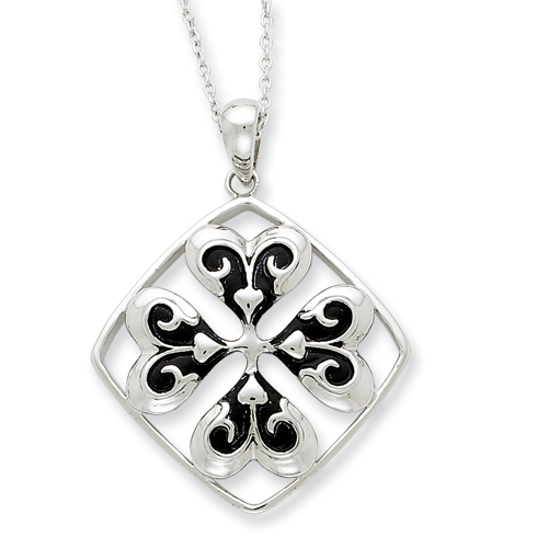 Picture of Sterling Silver Antiqued Wishing You Luck 18in Necklace