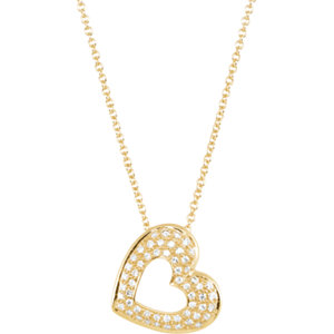 14kt Yellow NECKLACE Complete with Stone ROUND VARIOUS Diamond Polished 1/4CTW DIA HEART NECKLACE