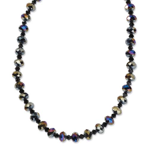 Black-plated Aurora Borealis Black Crystal 16" With Extension Necklace