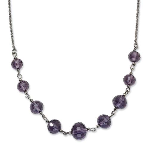 Black-plated Black Crystal Bead 16" With Extension Necklace
